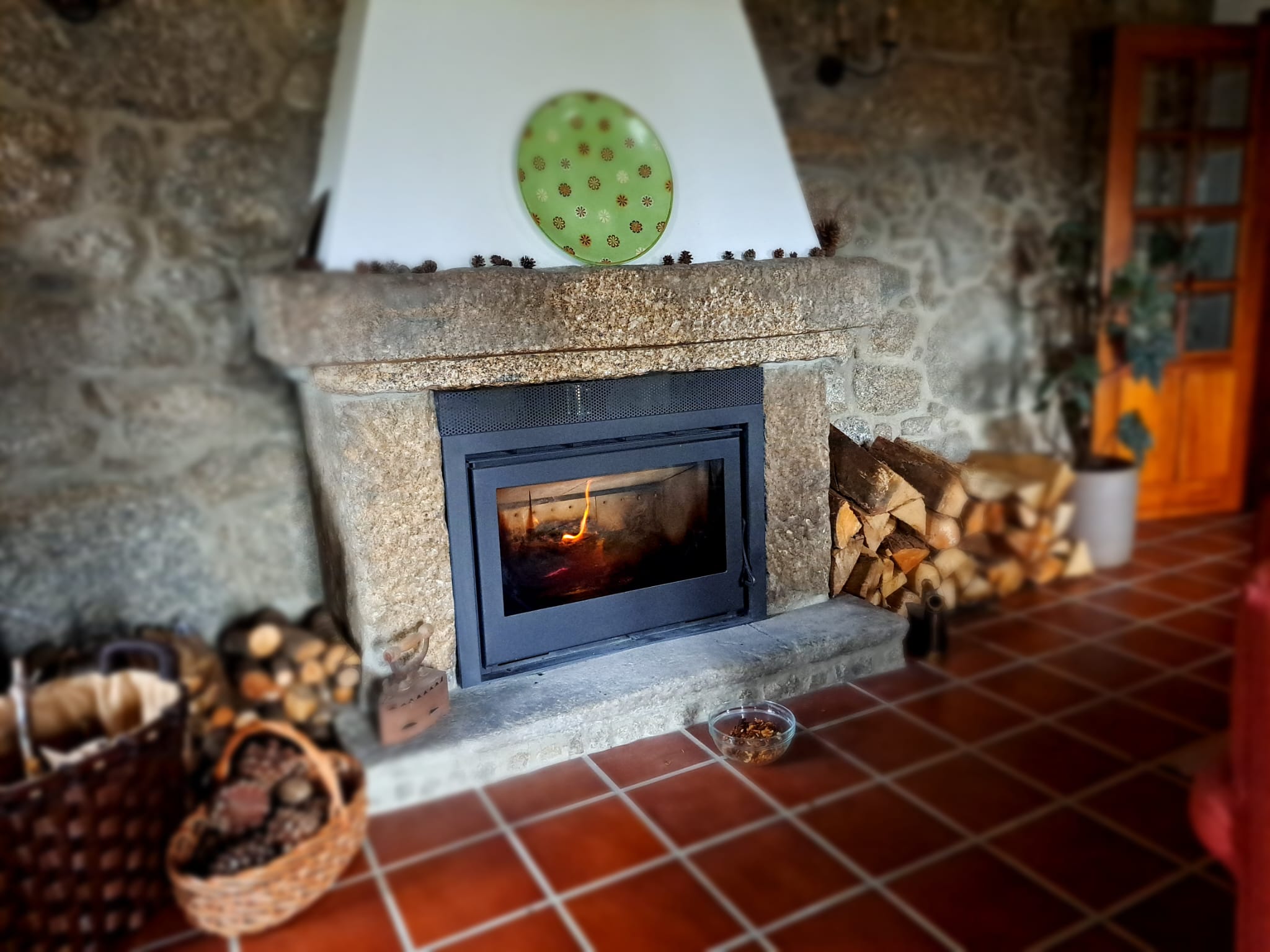 Verwarming: CV, met een open haard in de woonkamer en in de keuken.
