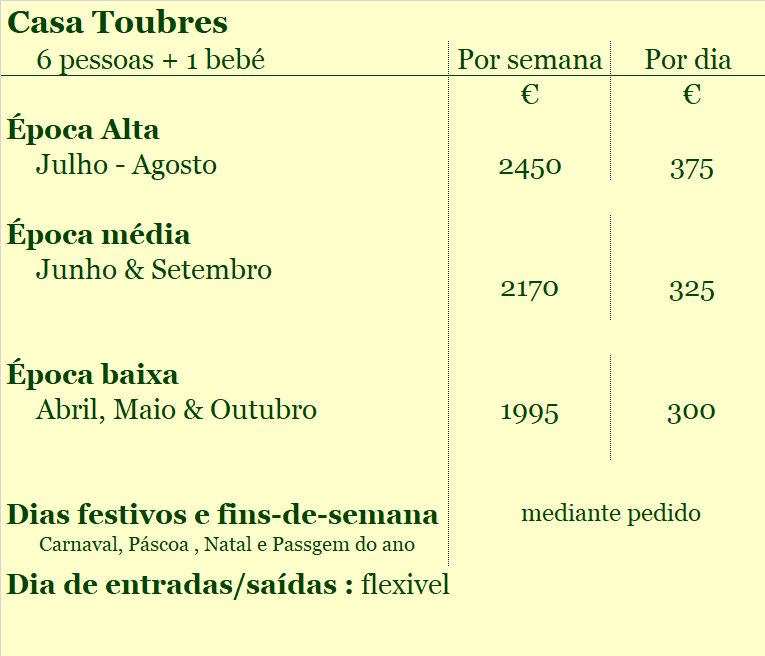 Comodidades: Piscina privada, churrasqueira, TV, Internet wi-fi, máquina de café expresso, forno, máquina de lavar louça, chaleira, micro-ondas, máquina de lavar roupa, frigorífico, berço (a pedido), estacionamento gratuito dentro da propriedade